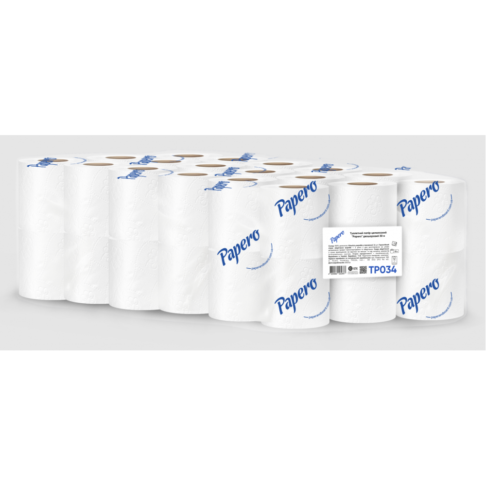 Бумага туалет. целлюлозный 30м, на гильзе, 2-х слой., белый PAPERO 36шт.