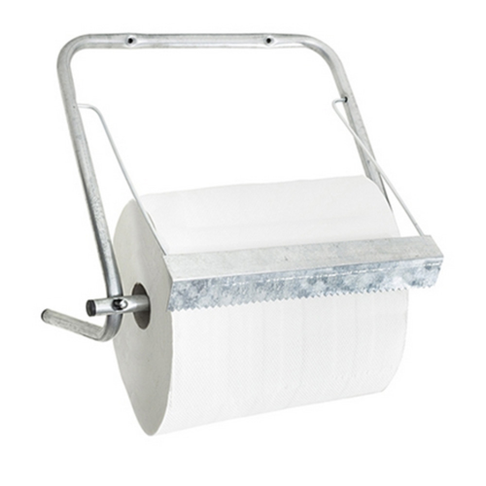 Держатель бумажных рулонных полотенец используется для промышленных бобинных протирочных бумажных полотенец. Изготовлен из металла. Устойчив к поломкам. Имеет оцинкованный нож для обрыва полотенец. Крепится к стене или другой вертикальной поверхности.