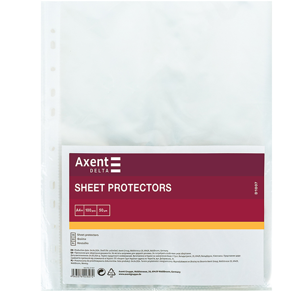 Файл Axent А4+ Glossy, прозрачный, 50мкм, глянцевый (100 шт.)
