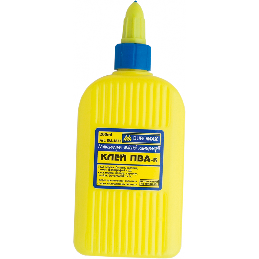 Клей ПВА BUROMAX – станет незаменимым помощником в работе. Подходит для повседневного использования в офисе, а также для творчества. Характеристики: объем – 200 мл. для склеивания бумаги, картона, фотографий, дерева, ткани, пробки пластиковый флакон с дозатором, который выкручивается колпачок-дозатор регулирует подачу клея и предотвращает высыханию клей наносится тонкой линией в горизонтальном положении не вытекает смывается водой не токсичен BUROMAX – это качество и надежность!
