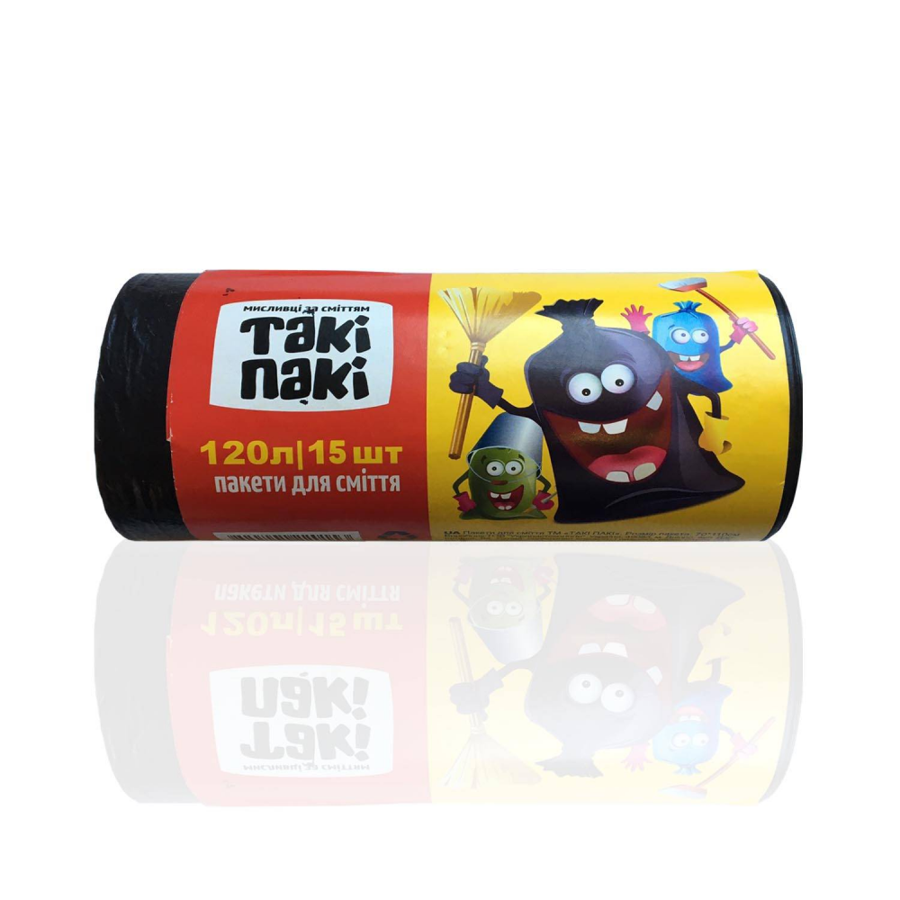 - Пакети для сміття Такі Пакі 120 літрів 25 мкм LDPE 15 штук чорні