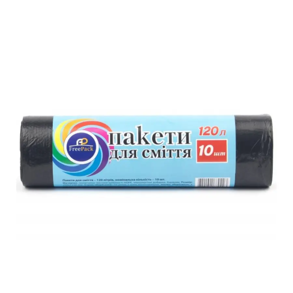 - Пакеты для мусора FreePack 120 литров 12 мкм черные 10 штук