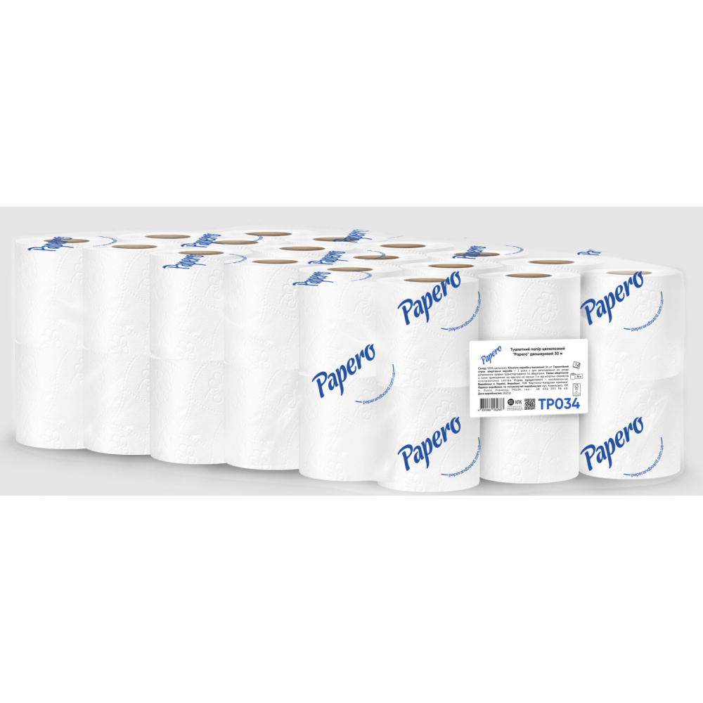Папір туал. целюлозний 30м, на гільзі, 2-х шар., білий PAPERO 36 шт.