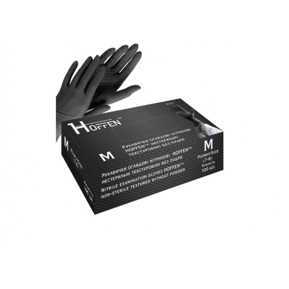 Перчатки нитриловые HOFFEN смотровые неприпудренные M /50 пар черные