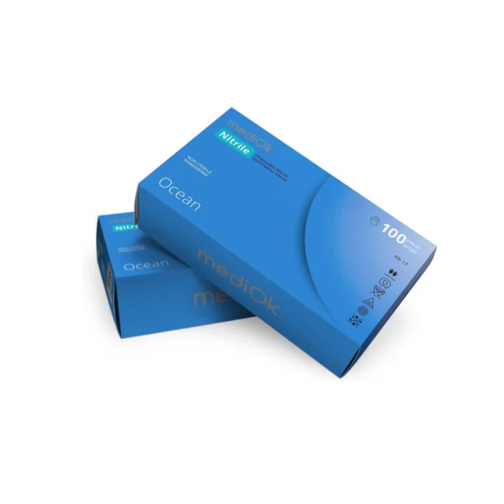Перчатки нитриловые mediOk® смотровые неприпудренные S /50 пар голубые