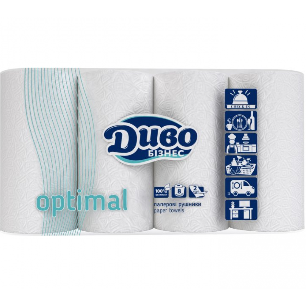 Полотенца целлюлозные «ДИВО Бизнес OPTIMAL», по 8 рул., на гильзе, 2-х слой, белый