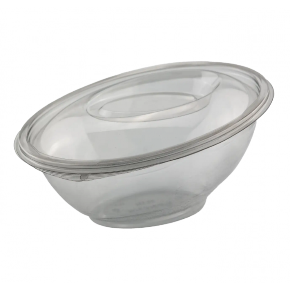 Салатник- Салатник овальний зкошений 750 мл зручна і практична тара, виготовлена з не токсичного матеріалу для зберігання продуктів харчування. Дана упаковка найчастіше використовується для розфасовки салатів, полуфабрикатів, кондитерських виробів, а також готової до вживання продукції. Завдяки тому, що контейнер виготовлен з прозорого матеріалу, покупець легко зможе побачити товар, не відкриваючи при цьому упаковку. Салатник овальний зкошений 750 мл може бути укомплектований кришкою та вставкою.